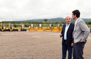 “Es impresionante la imagen”, dijo el Gobernador en el predio del Campamento Oeste de Vialidad donde estaba parte de la flamante flota integrada por 58 nuevos equipos entre topadoras, cargadoras frontales, retroexcavadoras, compactadoras de rodillo liso, motoniveladoras, excavadoras hidráulicas, camiones.
